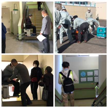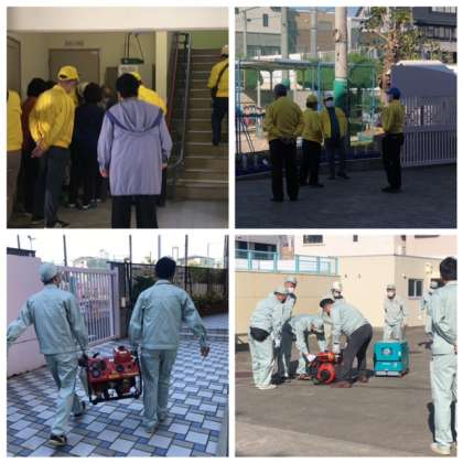 朝早くから地域のみなさんが来られて、防災訓練をしています。