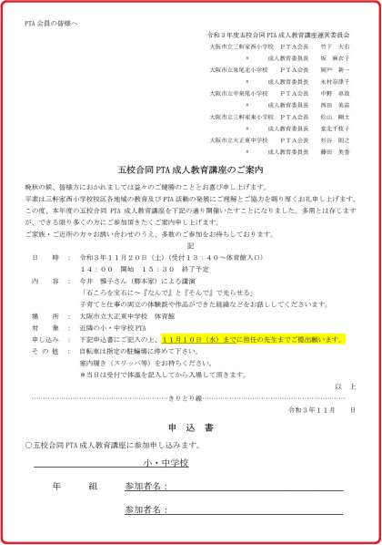 五校合同PTA成人教育講座のご案内