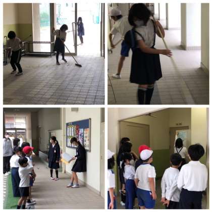みんなで学校をきれいにするという意欲を持ちながらも、いつもと違うメンバーで、会話を楽しみながら、掃除をしました。