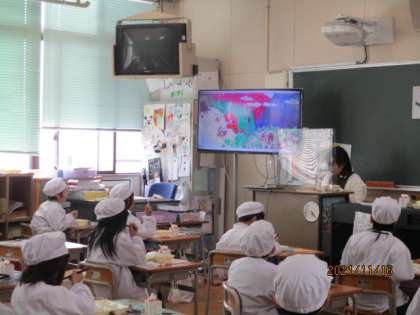 今日の給食時間のTV放送には、突然、三ちゃん劇団(正体はひ・み・つ)が登場しました!