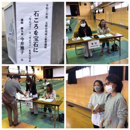 11月20日、大正東中学校で五校PTA成人教育講座が開かれました。脚本家の今井雅子様をお迎えして、「石ころを宝に」という講演会でした。