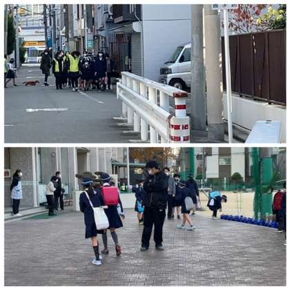 子どもたちはいつもどおり、集団登校をしてきました。