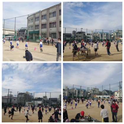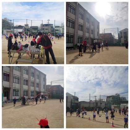 業間の時間に運動場に子どもたちが出てきました。