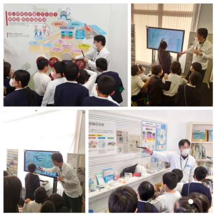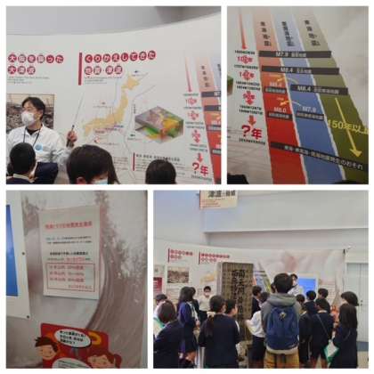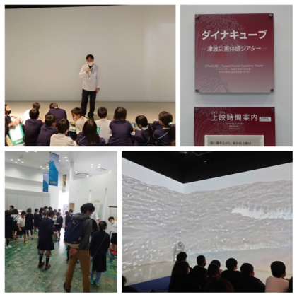 最後に、繰り返してきた地震・津波について、南海トラフの地震発生確率を知り津波体感シアターで津波の脅威について学びました。