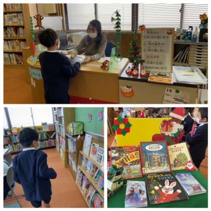 図書館の中は12月の飾り付けでみんなの心がほっこりします。