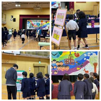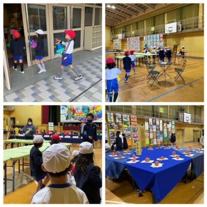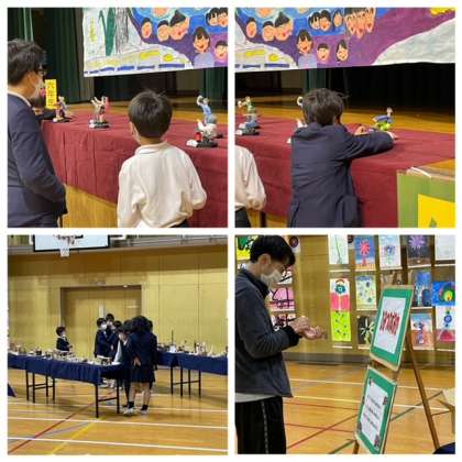 12月15日、子どもたちの立体作品を講堂に並べます。