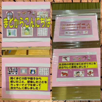 開くまどの形や様子から感じたこと、想像したことをカッターナイフを使って自分らしく表しました。