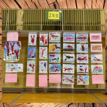 生活科の学習で育てたザリガニを自分らしく表現しました。