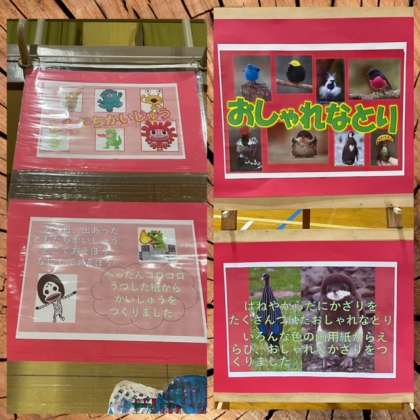 いろんな色の画用紙から選び、おしゃれなかざりをつくりました。