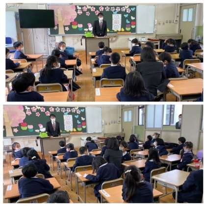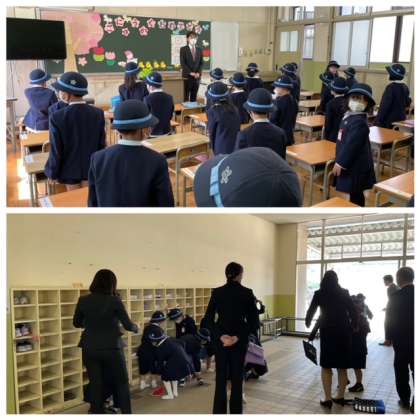 学校長や2年生からのメッセージも終わり、教室に戻った1年生です。