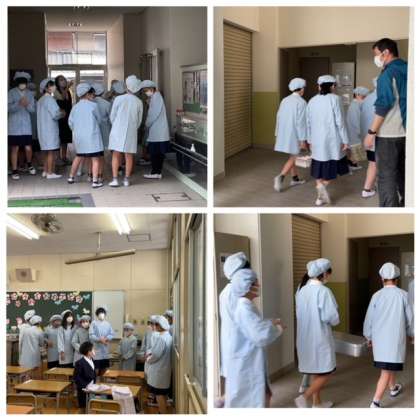 最初にリーダーが給食を1年の教室まで運んでくれました。