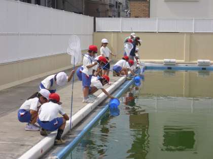 この日は、水を抜く前のプールからヤゴを助け出しました。