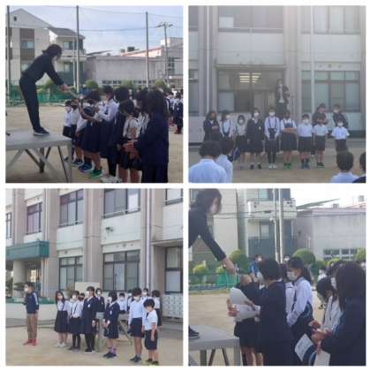学校中のみんなでよろしくお願いしますの思いを込めて拍手をしました。