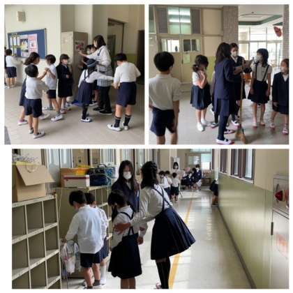 リーダーやサブリーダーが優しく1、2年生に教えます。