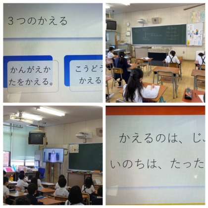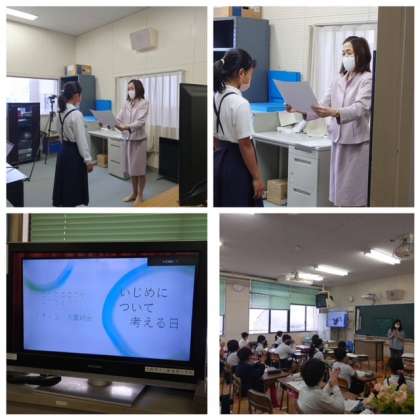 5月9日の児童朝会は、ゴールデンウィークに活躍したキックベースチームの表彰といじめについて考える日のお話でした。