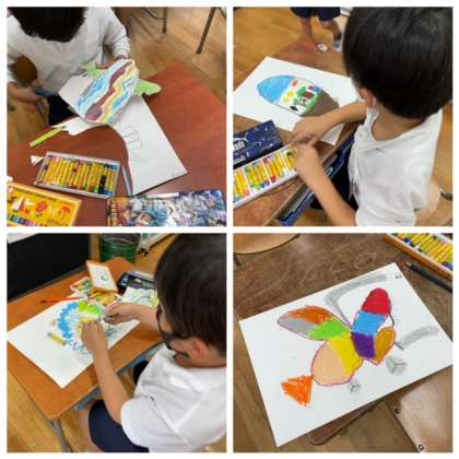 自分らしく形を決めて、色を考えて、たまごを描きました。