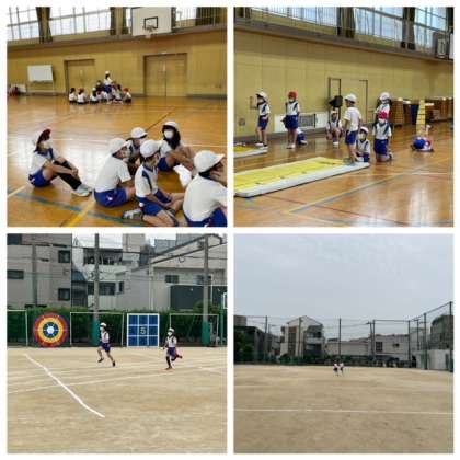 運動場で50メートル走、講堂では握力、立ち幅跳びなどをしました。