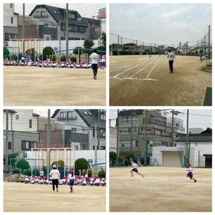 1年生は、初めてのスポーツテストで、50メートルの長さを感じていました。
