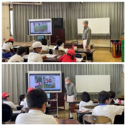 いつも子どもたちにお米作りを教えてくださるゲストティーチャーを招いて、今年度も始まりました。