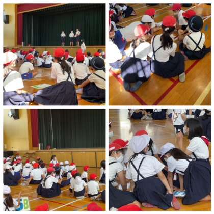 3人の集会委員がいっぺんに言葉を言い、それを当てるゲームです。
