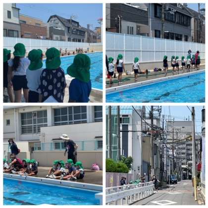 7月1日、2年生がプールで学んでいるところを見学に来てくれました。