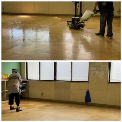 7月28日、教室のワックスがけをしていただいています。