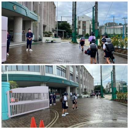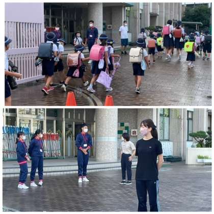 元気にあいさつをし、それに応える子どもたちです。
