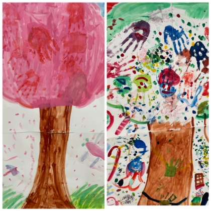 子どもたちがチームになって、イメージした「しあわせの木。」