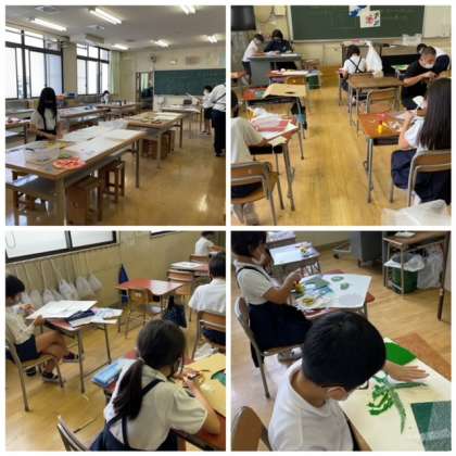 図工室では、さまざまな色のインクがあり、楽しんですっていました。