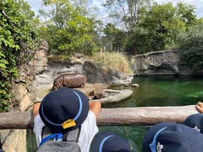 フラミンゴ、カバ、カンムリワシと見学は続いています。
