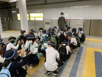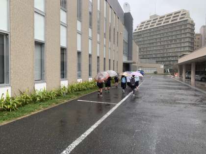 少し雨はきついですが、一列で歩いて無事に到着です。