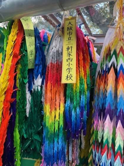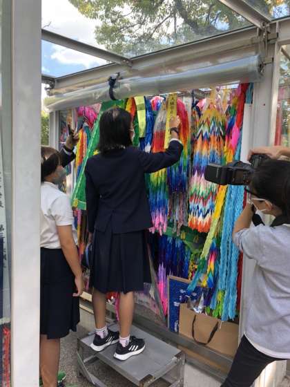 三軒家西小学校のみんなでつくった折り鶴をそなえました。