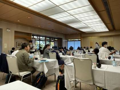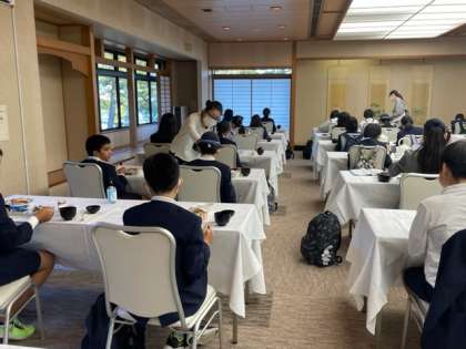 コロナ禍なので、みんな前を向いて、黙って食べています。