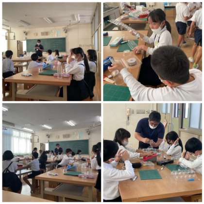 今日は、LEDライトの光と透明容器の光り方を考えてつくります。
