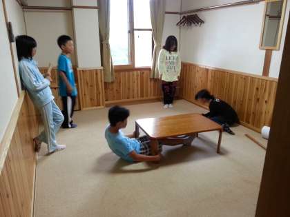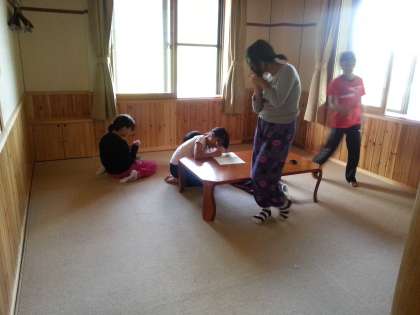 明日行うキャンプファイアーのスタンツの練習&相談でした。