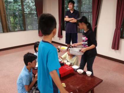 林間学習一日目、もうすぐ夜の活動を向かえます。
