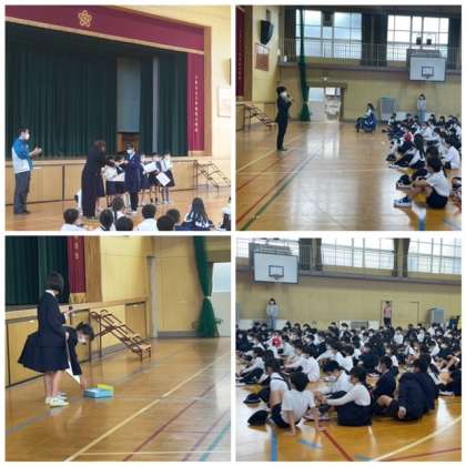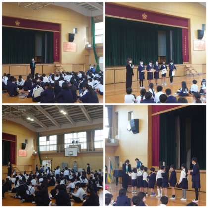 11月14日の児童朝会は、たくさんの表彰と新しい出会いでした。