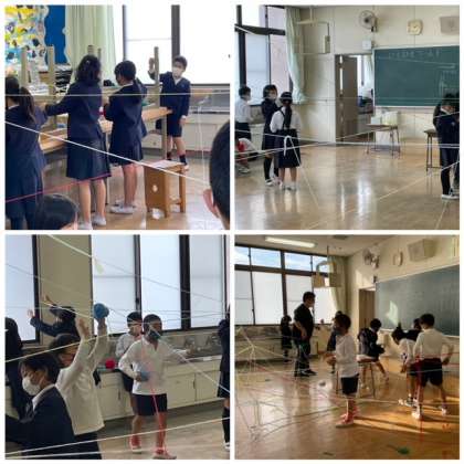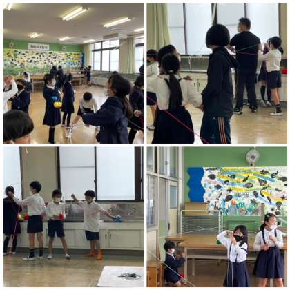毛糸のひもを結んだり、つないだりして活動を楽しみました。