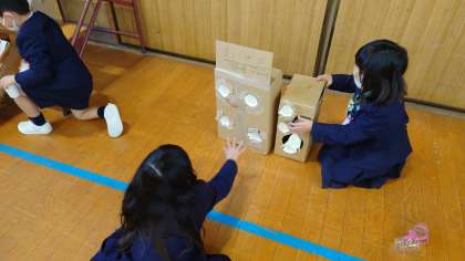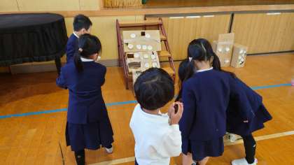 作ったおもちゃを持ち寄って、みんなで遊びます。