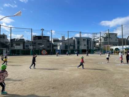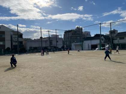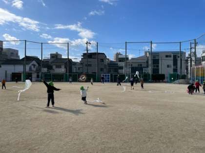 三軒家西小学校の運動場で凧上げを楽しみました。