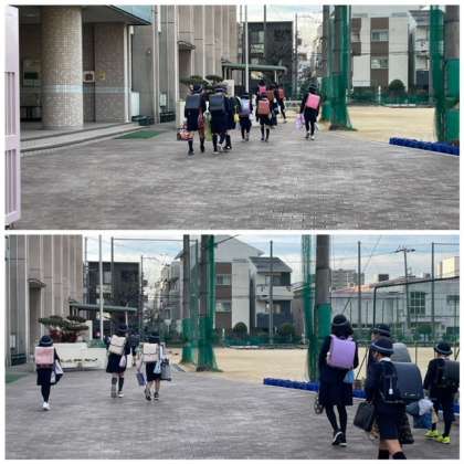 さあ、始業式の朝の登校が始まりました。