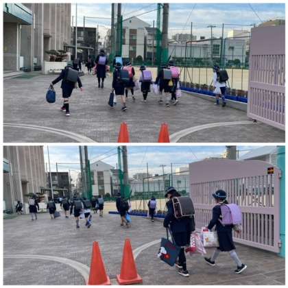 「あけましておめでとうございます。今年もよろしくお願いします。」と話して、門を入っていくすてきな子どもたちです。