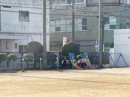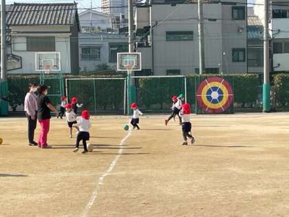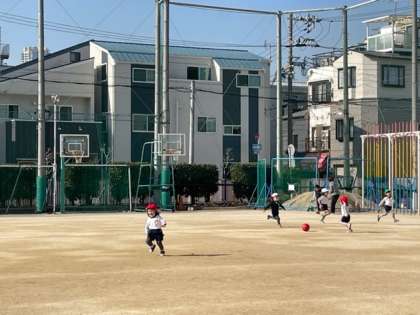 暖かさを感じる日中に、元気よく、運動場を走り回ります。