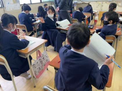 豆太のことを表すことばや文を選び、どうしてそこにしたのかを伝えあっていました。