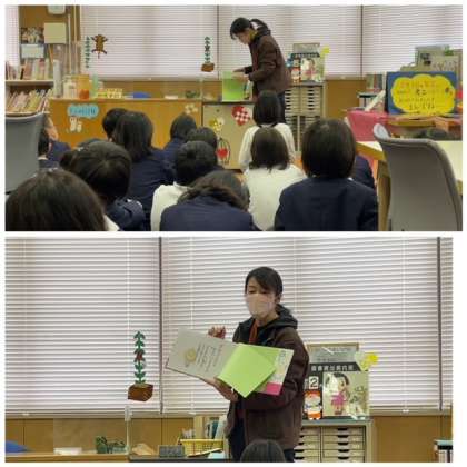 図書室で読み聞かせがありました。