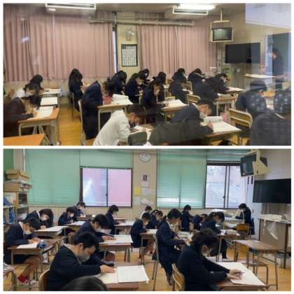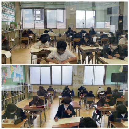 はじめてくださいの合図とともに,一斉に検定に向き合い、鉛筆の音だけが教室から聞こえました。