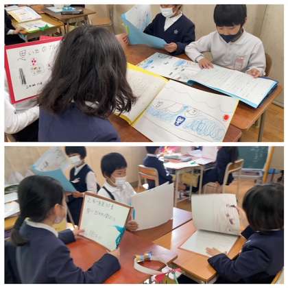 1年間の思い出をまとめたものを,グループで読み合いました。