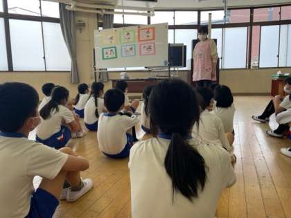 4月11日、係活動を決めたり、保健室からお話があったり,楽しく音楽をしたり。