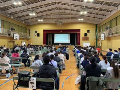 4月19日、大正区の先生たちが三軒家西小学校に集まり,今年度の研究についての会議がありました。