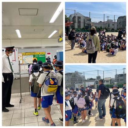 きちんと駅員さんにあいさつをする三軒家西小学校の子どもたちです。